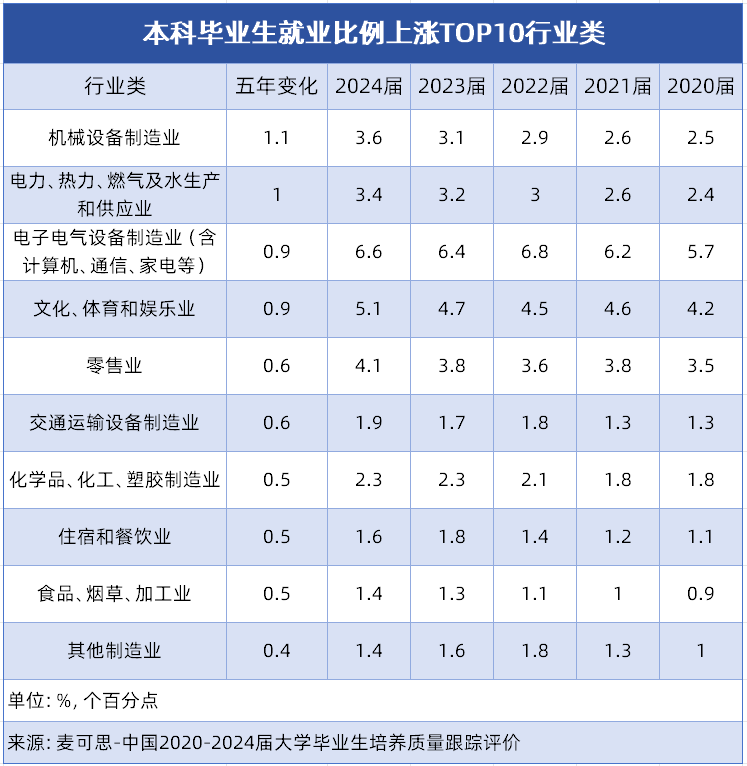 这10个行业类的分布特征明显:制制业相关行业占领从导,涵盖机械设备、电子电气设备等多个细分范畴,占TOP10中的6席。这一态势表现了我国制制业转型升级成效,电子消息等焦点范畴对专业本科人才需求兴旺。同时,能源保障、消费升级、平易近生办事等类行业的稳步增加,也为大师将来职业选择供给了更多元标的目的,这些增加显著行业对应的专业范畴,值得沉点关心。